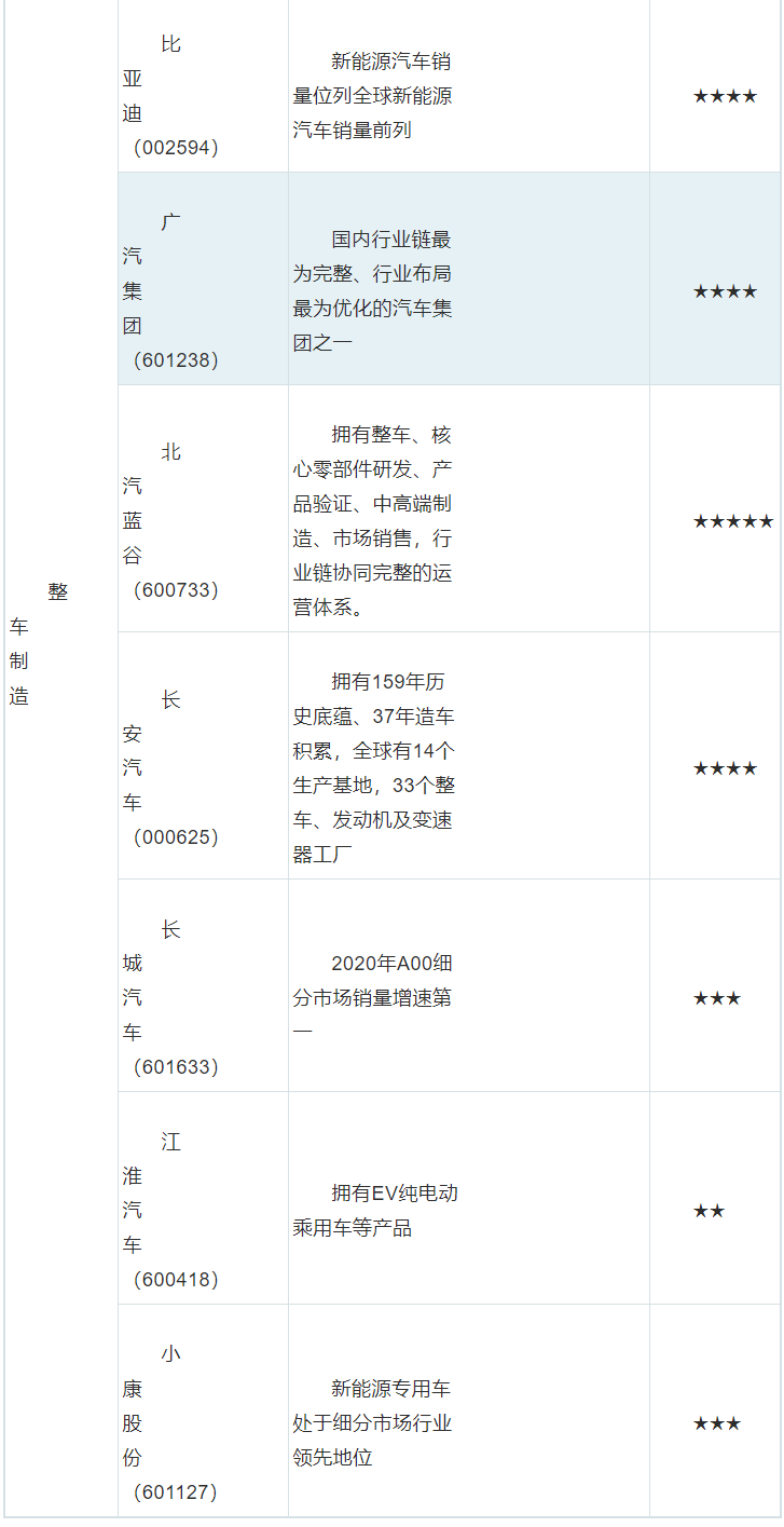 當(dāng)前,由于科技和行業(yè)變革,新能源汽車已經(jīng)成為汽車行業(yè)轉(zhuǎn)型升級(jí)的中堅(jiān)力量。目前,我國新能源汽車行業(yè)的上市公司數(shù)量較多,分布在各行業(yè)鏈環(huán)節(jié)。其中,涉及新能源汽車整車制造上市公司包括:上汽集團(tuán)、廣汽集團(tuán)、比亞迪、北汽藍(lán)谷、長安汽車等。
