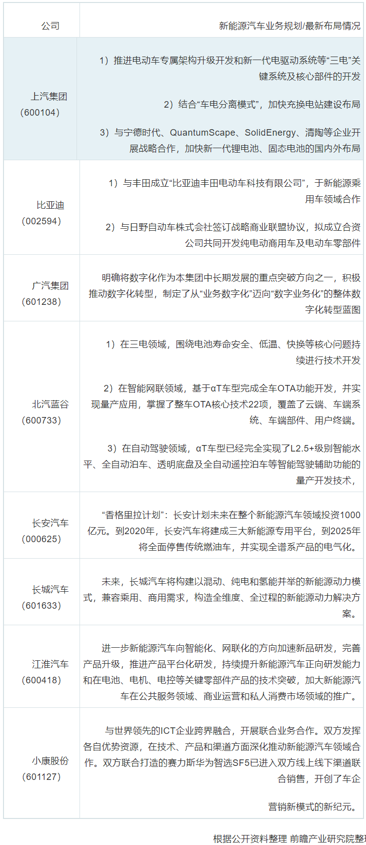 4、新能源汽車行業(yè)上市公司新能源汽車業(yè)務(wù)規(guī)劃對(duì)比