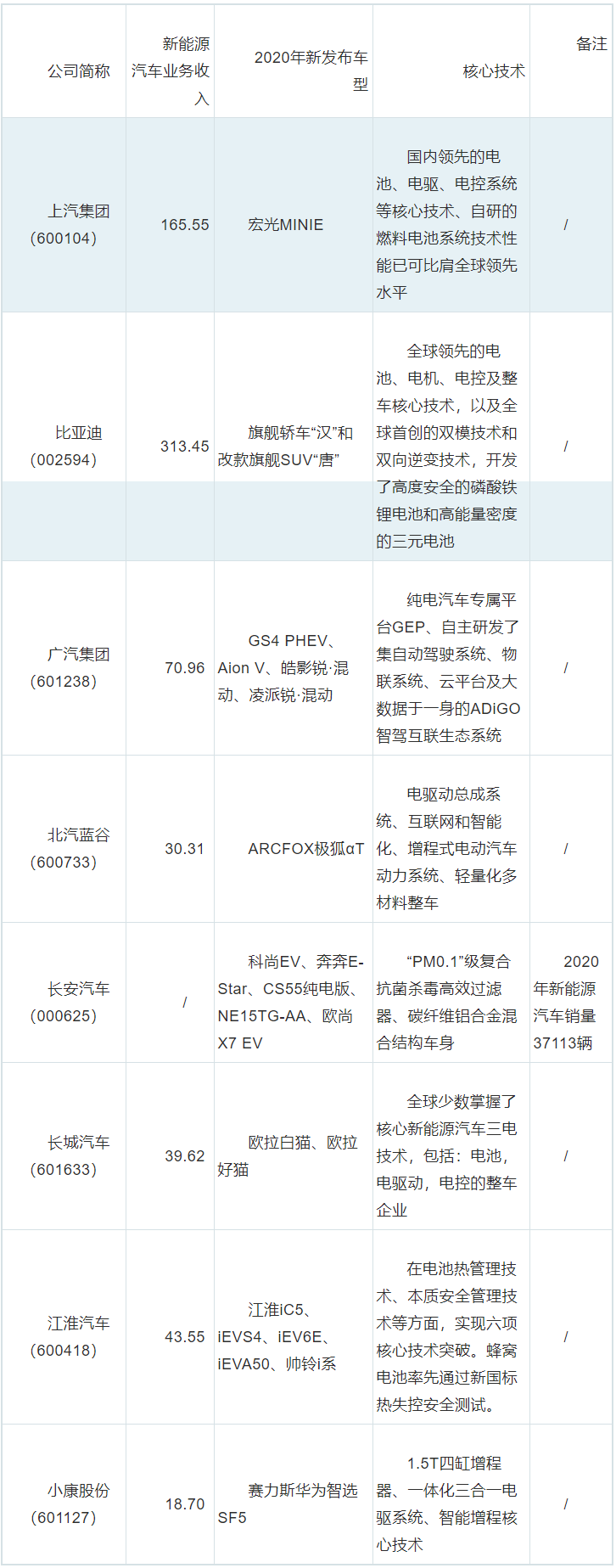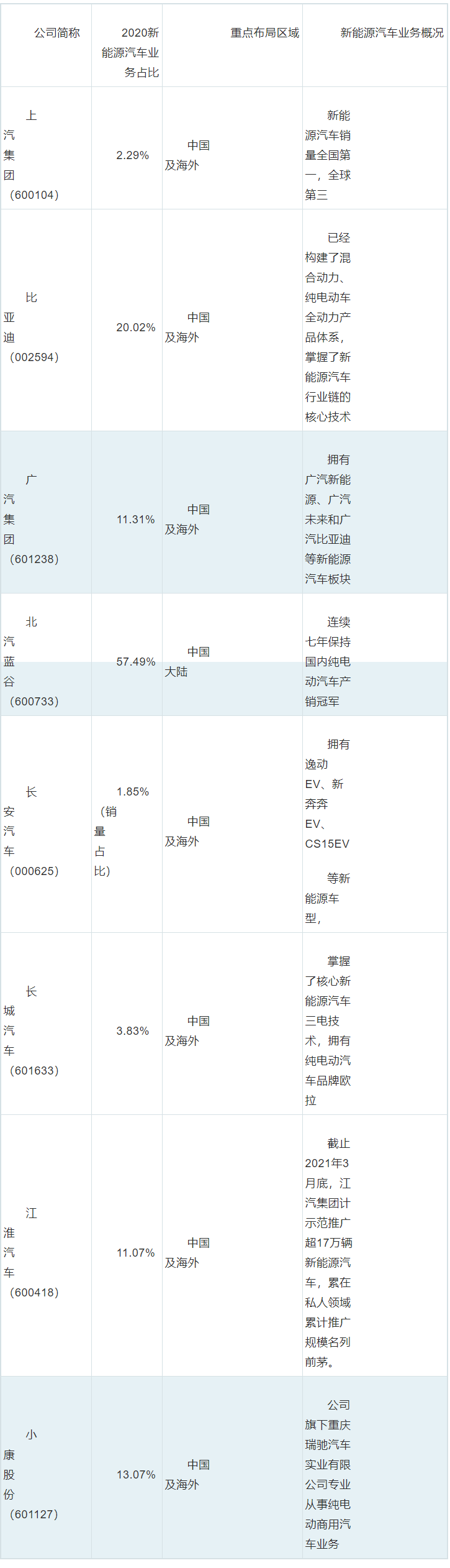 2、新能源汽車行業(yè)上市公司業(yè)務(wù)布局對(duì)比
