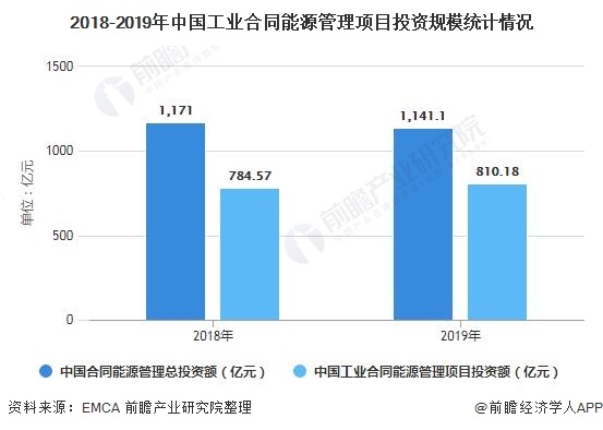 經(jīng)推算后得出2018年中國工業(yè)合同能源管理項(xiàng)目投資額為784.57億元;2019年中國工業(yè)合同能源管理項(xiàng)目投資額為810.18億元,在節(jié)能行業(yè)總投資額有所下降的情況下,工業(yè)節(jié)能服務(wù)產(chǎn)業(yè)仍然同比上年增長(zhǎng)3.26%。