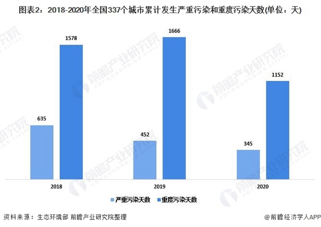 近年來(lái),全國(guó)空氣質(zhì)量持續(xù)改善,出現(xiàn)了穩(wěn)中向好的趨勢(shì)。2020年,全國(guó)337個(gè)城市累計(jì)發(fā)生嚴(yán)重污染345天,比2019年減少了107天;重度污染1152天,比2019年減少514天。2020年大氣污染防治設(shè)備產(chǎn)量實(shí)現(xiàn)小幅增長(zhǎng),同比僅增長(zhǎng)0.93%。