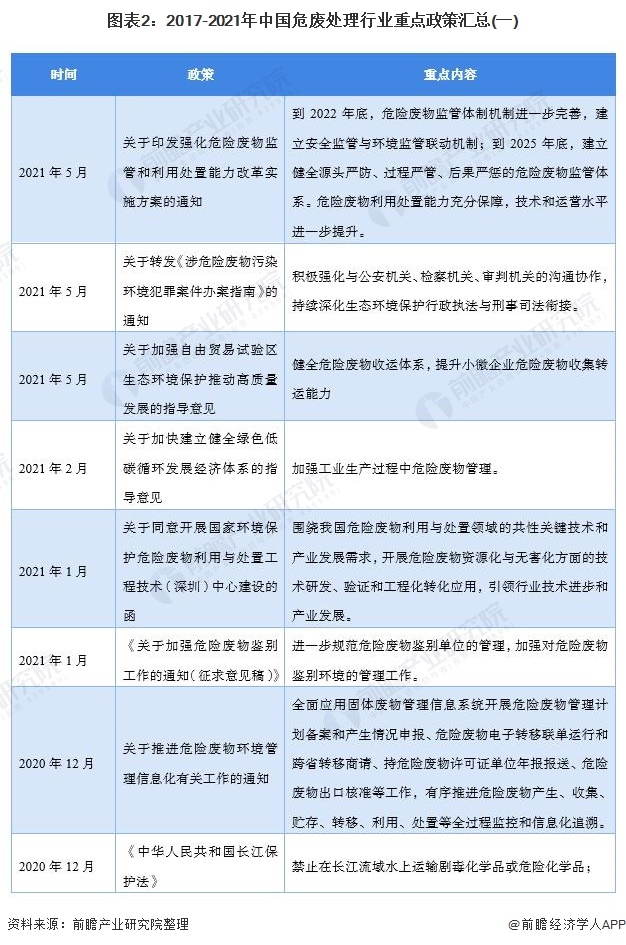 原標(biāo)題:重磅!2021年中國及31省市危廢處理行業(yè)政策匯總與解讀(全) 圍繞《危廢名錄》建立行業(yè)政策體系