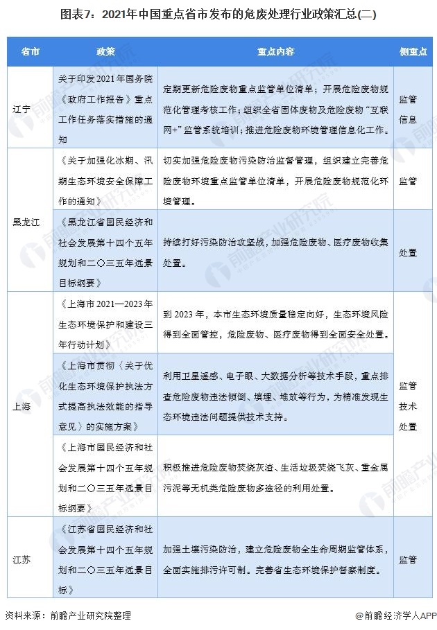 重點(diǎn)省市危廢處理最新推動(dòng)政策匯總