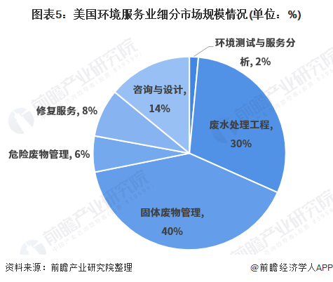 全球來看,北美市場發(fā)展良好,2020年美國環(huán)境服務(wù)業(yè)的市場規(guī)模將達到4600億元左右,廢物處置仍是環(huán)境服務(wù)項目的主要部分。