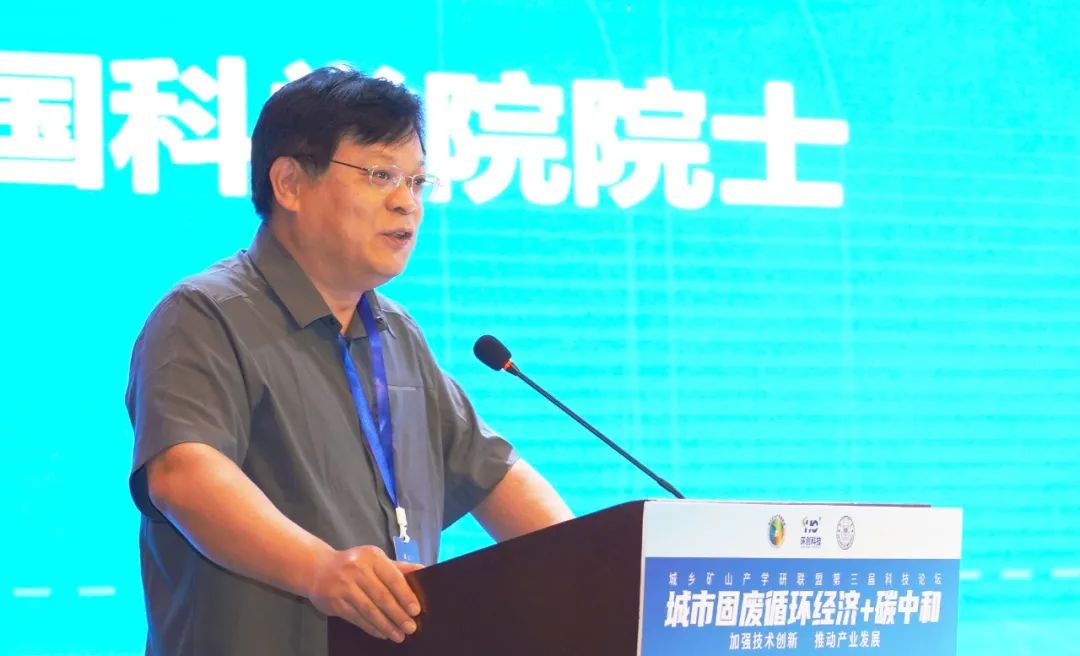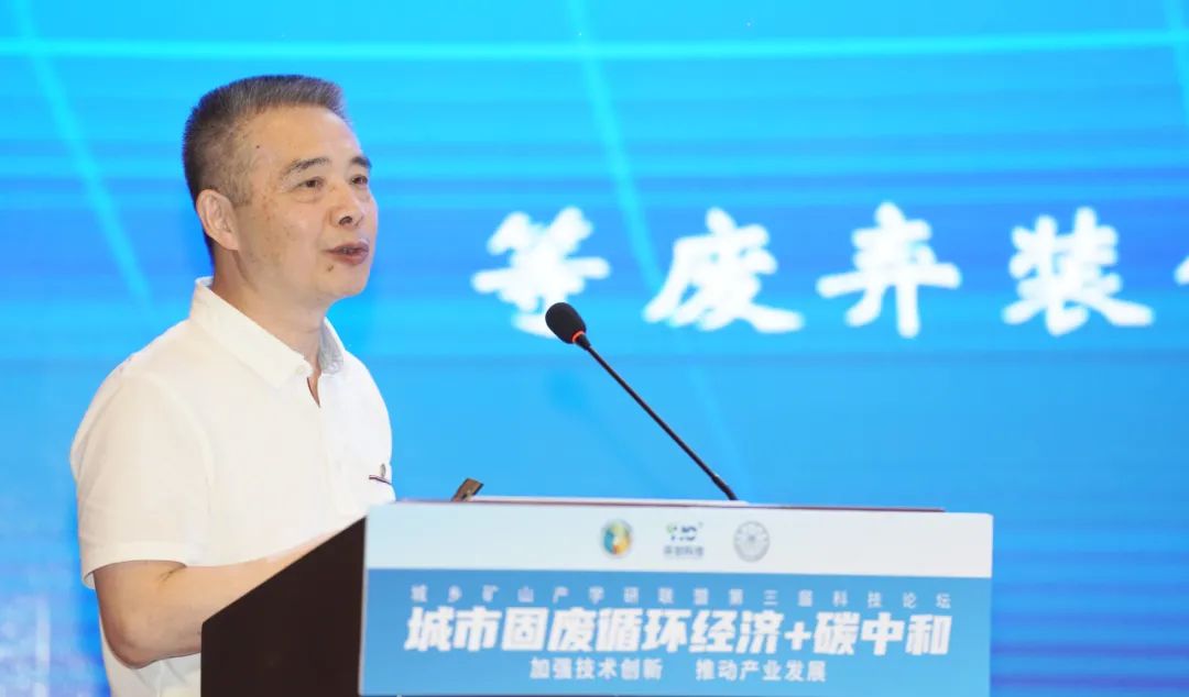 中國(guó)工程院陳勇院士在論壇發(fā)言中指出,城鄉(xiāng)礦山產(chǎn)學(xué)研聯(lián)盟論壇的迅速壯大,意味著國(guó)家和社會(huì)對(duì)固廢資源化處置更加關(guān)注和重視,從事固廢資源化處置研究的科研院校和企事業(yè)單位也越來(lái)越多,從而將極大推動(dòng)處置技術(shù)的快速進(jìn)步,促進(jìn)“碳達(dá)峰”“碳中和”。