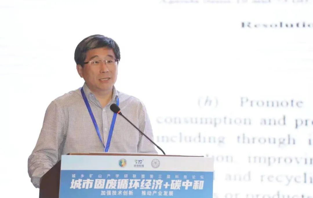國(guó)家發(fā)改委體改所循環(huán)經(jīng)濟(jì)研究室楊春平主任,向大會(huì)做“碳中和背景下循環(huán)經(jīng)濟(jì)作用再認(rèn)識(shí)”的主旨報(bào)告,指出對(duì)固廢進(jìn)行資源化利用,發(fā)展循環(huán)經(jīng)濟(jì),是實(shí)現(xiàn)綠色發(fā)展和低碳發(fā)展的基本路徑。