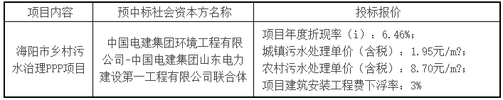 海陽(yáng)市鄉(xiāng)村污水治理PPP項(xiàng)目預(yù)中標(biāo)結(jié)果公示