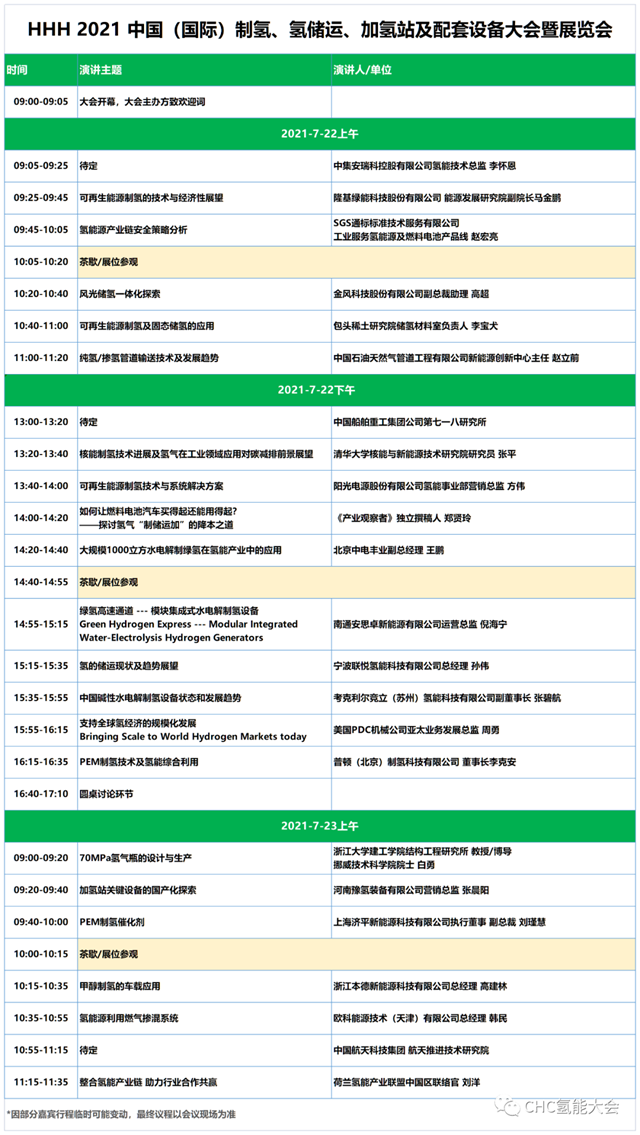 《HHH 2021 中國(guó)(國(guó)際)制氫、氫儲(chǔ)運(yùn)、加氫站及配套設(shè)備大會(huì)暨展覽會(huì)》將于2021年7月22-23日在杭州召開(kāi)。