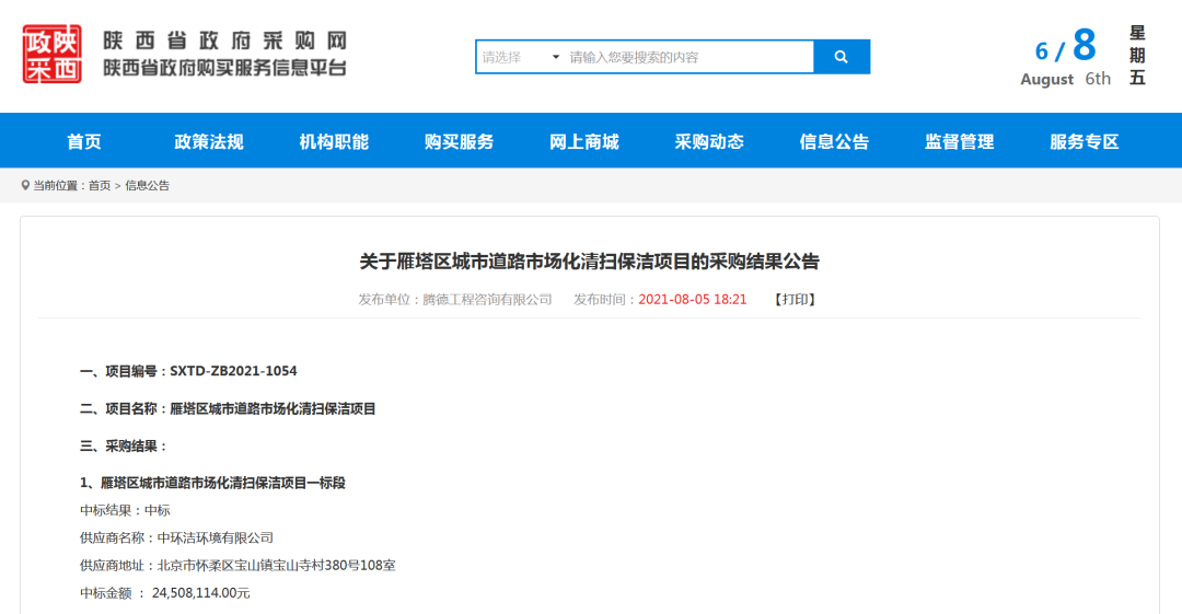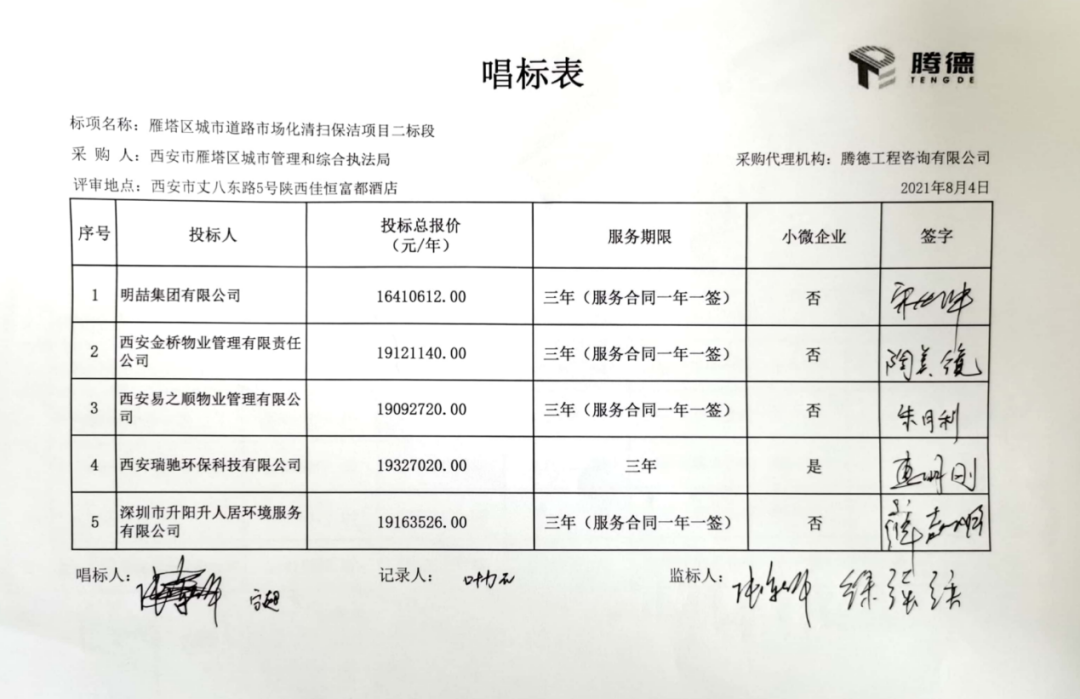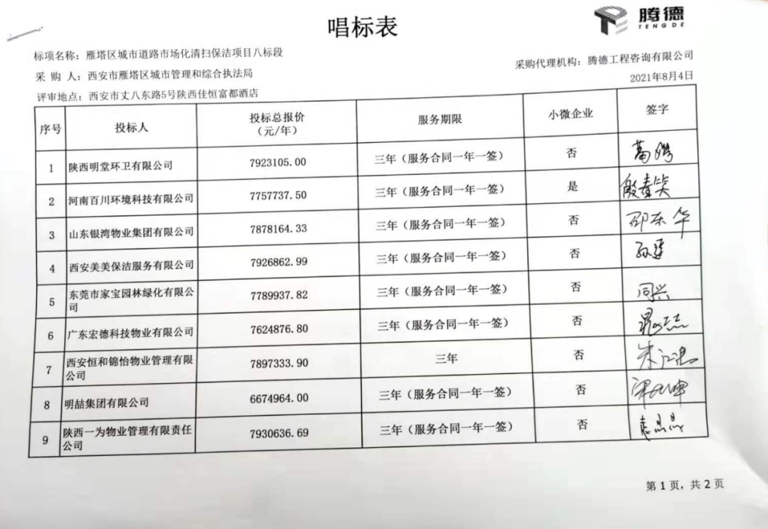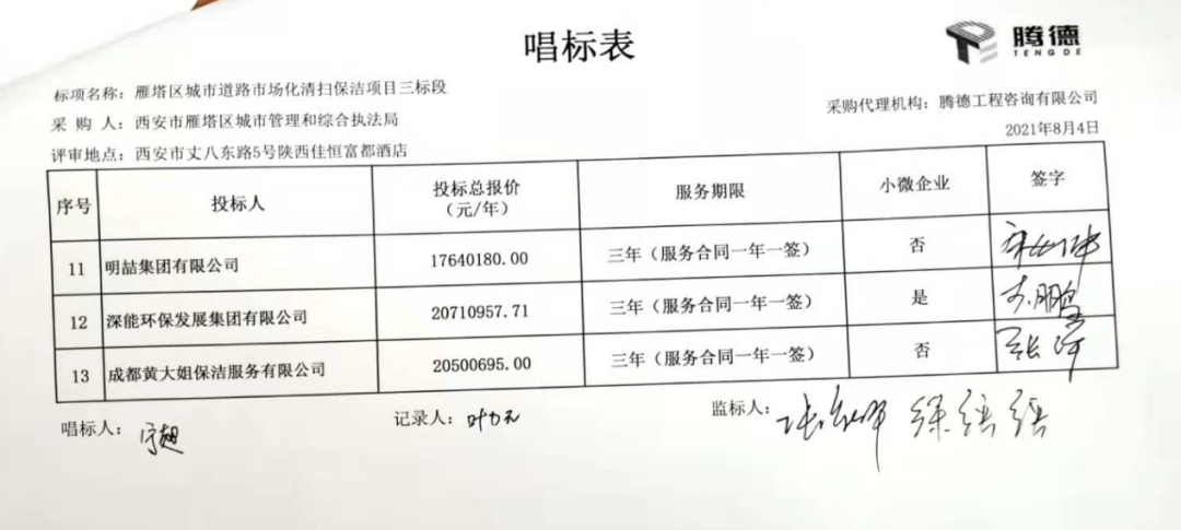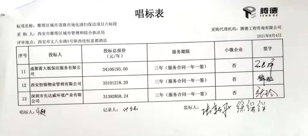 陜西省政府采購網消息,8月5日,西安市雁塔區(qū)城市道路市場化清掃保潔項目開標再現(xiàn)大場面。
