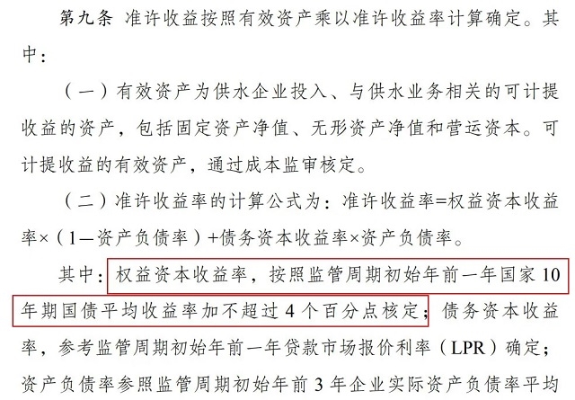 此外,新的《管理辦法》還建立了參考市場利率合理確定供水收益率的機制。