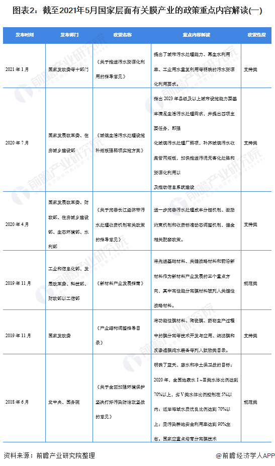 圖表2:截至2021年5月國(guó)家層面有關(guān)膜產(chǎn)業(yè)的政策重點(diǎn)內(nèi)容解讀(一)