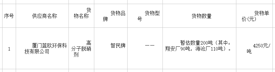 廈門公物-公開(kāi)招標(biāo)-GW2021-QY190C-高分子脫硝劑采購(gòu)-中標(biāo)候選人公示