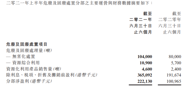 報告期內(nèi),公司運營及完工的危廢及固廢處置項目26個,無害化處置方面,共處置危廢及固廢約10.4萬噸,較去年同期增加30%;資源綜合利用方面,共處置危廢及固廢10,900噸,較去年同期增加91%,并銷售資源化利用產(chǎn)品約4,600噸,較去年同期增加92%。