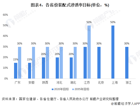 目前我國各地的政策也在大力支持裝配式施工方式的推廣。廣東、安徽、陜西等多數(shù)省份均對此設立了2035年滲透率達到30%的目標,北京、上海、江蘇、浙江等經(jīng)濟發(fā)達地區(qū)則更為嚴苛,分別設定了2020年滲透率達到30%、50%的目標。隨著“碳達峰”“碳中和”政策的持續(xù)加碼,以數(shù)字化技術支持綠色環(huán)保的新型施工方式將有更大發(fā)展空間。