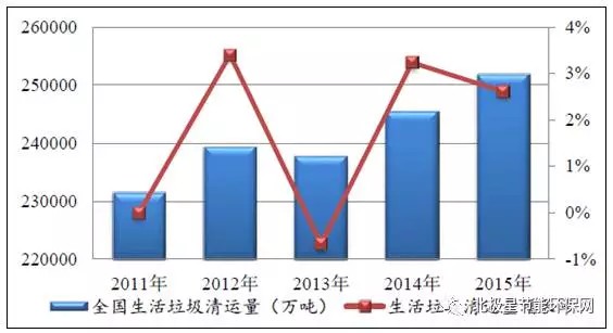 2011-2015年中國生活垃圾清運量