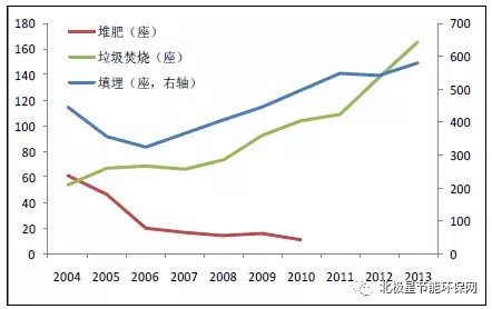 我國三種方式垃圾處理廠增長情況(座)