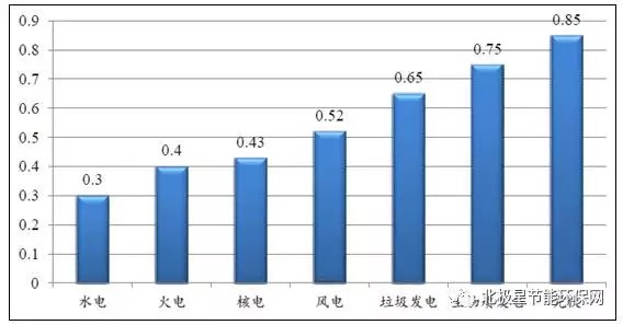 各種發(fā)電方式上網(wǎng)電價(元/kwh)