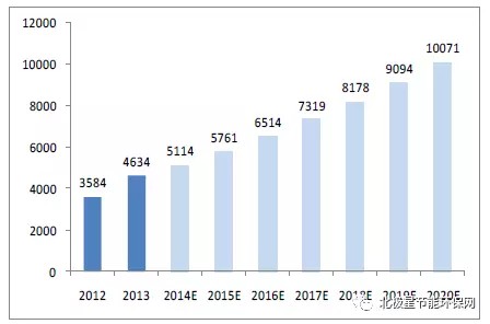 我們以“十二五”規(guī)劃目標作為參考,預(yù)計“十三五”末,全國城市生活垃圾無害化處理率達到95%,垃圾焚燒處理能力達到無害化處理總能力的50%,那么到2020年,保守估計我國城鎮(zhèn)生活垃圾焚燒無害化處理量將達到1億噸,較測算的2015年處理量5760萬噸增長4310萬噸。