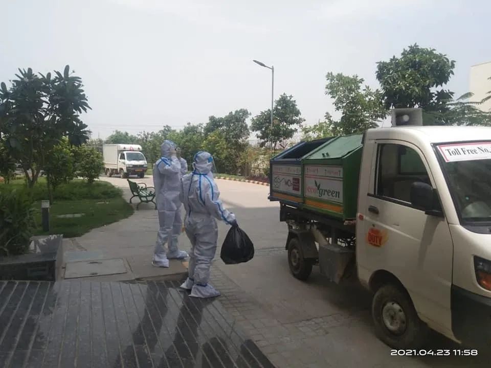 Ecogreen公司自2017年開始為哈里亞納邦下的重要城市古爾岡和法里達(dá)巴德提供垃圾清運(yùn)及處置服務(wù),每日收集垃圾量約1700噸。疫情期間,在確保員工健康前提下,保障了垃圾清運(yùn)工作的平穩(wěn)運(yùn)行,并提供專車用于運(yùn)輸醫(yī)療廢棄物,為當(dāng)?shù)匾咔榉揽刈龀隽λ芗暗呢暙I(xiàn)。