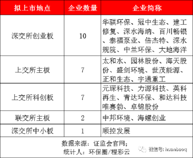 從擬上市板塊看,今年擬登陸資本市場(chǎng)的28家環(huán)保企業(yè),主板上市的有7家,相較于去年的4家增加了3個(gè),這7家企業(yè)分別是太和水、園林股份、海天股份、盛劍環(huán)境、世茂能源、正和生態(tài)、宇通重工。