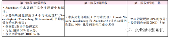 NEWs發(fā)展的終極目標(biāo)是在同一污水處理廠內(nèi)實(shí)現(xiàn)營(yíng)養(yǎng)物、能源和水三位一體生產(chǎn)。Vallei & Eem 水務(wù)局計(jì)劃以Amersfoort污水處理廠為案例,探求新技術(shù)與新工藝,以使污水廠至少能達(dá)到能量自給自足的水平。具體目標(biāo)是2014年Amersfoort污水廠將以能量工廠方式運(yùn)行,除能量回收外,營(yíng)養(yǎng)物(N、P)也予以回收利用。同時(shí)Vallei&Eem水務(wù)局與荷蘭應(yīng)用水研究基金會(huì)(STOWA)已開(kāi)始執(zhí)行Omzet-Amersfoort合作計(jì)劃(2011——2016),這一計(jì)劃主要在Amersfoort污水廠中實(shí)施,將其轉(zhuǎn)化為能源與資源回收工廠。其預(yù)期結(jié)果見(jiàn)下表。