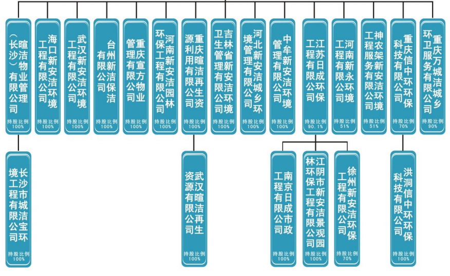 就在其宣布轉板消息不久,9月3日,北京證券交易所(下文簡稱“北交所”)注冊成立,11月15日將正式開市。據(jù)了解,北交所實行試點證券公開發(fā)行注冊制,由全國中小企業(yè)股份轉讓系統(tǒng)中的精選層整體平移而來,定位為“專精特新”中小企業(yè)直接融資服務,偏重服務創(chuàng)新型中小民營企業(yè)。這樣一來,對于環(huán)保產(chǎn)業(yè)中有機固廢處理、節(jié)能降碳裝備、資源循環(huán)利用等細分領域的科技創(chuàng)新驅動型中小企業(yè)來說,或許更有機會。而根據(jù)規(guī)則,屆時包括新安潔在內的新三板市場精選層首批68家公司將全部平移進入北交所。但對于已經(jīng)進入轉板通道的新安潔來說,或許因為對北交所活躍度有所擔心,或許由于轉板箭在弦上不得不發(fā),也或許其對轉板成功率有更多的信心,所以北交所的設立并沒有打斷其轉板的計劃。9月 13日、29日、10月20日和11月3日,新安潔專門發(fā)布了轉板進展公告,稱創(chuàng)業(yè)板轉板工作仍然按計劃推進,并將在完成各項準備工作后向深圳證券交易所提起申報。從其所處的行業(yè)看,目前環(huán)衛(wèi)市場的格局已經(jīng)有了新的變化,市場整體的領先地位已經(jīng)被北京環(huán)衛(wèi)、僑銀環(huán)保、玉禾田、啟迪桑德、盈峰環(huán)境、北控城市服務、龍馬環(huán)衛(wèi)等新老環(huán)衛(wèi)企業(yè)穩(wěn)定占據(jù),一些領先企業(yè)開始向城市服務運營商轉型。在業(yè)務方面,新安潔的業(yè)務范圍已經(jīng)覆蓋了重慶、湖北、江蘇、河南、山東、湖南、安徽等全國12個省,重慶區(qū)域的業(yè)務占比約1/4。其中,“重慶市兩江新區(qū)生活垃圾分類”、“武漢市東西湖區(qū)生活垃圾分類”、“山東青州市城鄉(xiāng)環(huán)衛(wèi)一體化”和“河南汝南縣城鄉(xiāng)環(huán)衛(wèi)一體化”項目,入選了中國城市管理協(xié)會主辦的2018國際城市環(huán)境衛(wèi)生博覽會示范案例。▼新安潔公司結構圖(截至2020年6月,來源:新安潔公告)此外,隨著這些年互聯(lián)網(wǎng)、物聯(lián)網(wǎng)、信息技術、智慧城市、AI等新技術在環(huán)衛(wèi)行業(yè)中應用越來越廣泛,新安潔也希望打造公司科技屬性,以全面實現(xiàn)環(huán)衛(wèi)智能化運營。