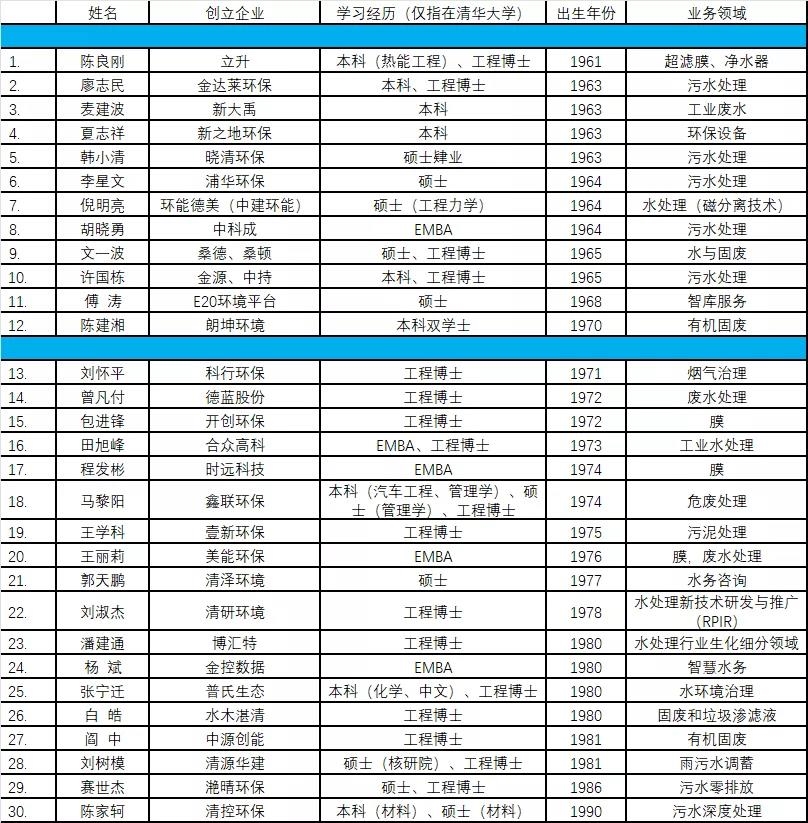 另外也有一批畢業(yè)于清華大學其他院系的環(huán)境產(chǎn)業(yè)創(chuàng)業(yè)者。
