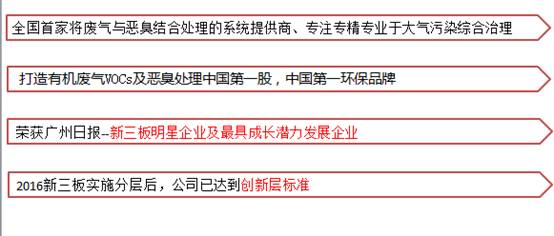 6月13日,紫科環(huán)保掛牌新三板。因?yàn)楝F(xiàn)在主板市場(chǎng)還沒有有機(jī)廢氣惡臭的公司,新三板是紫科的起步,紫科遠(yuǎn)大的夢(mèng)想是想走向更高的平臺(tái)。