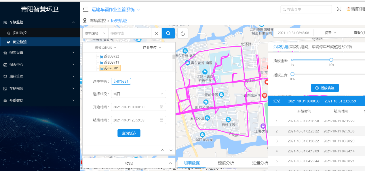 智慧環(huán)境平臺可將所有環(huán)衛(wèi)相關(guān)人員和設(shè)備納入監(jiān)管之中,并且提供歷史數(shù)據(jù)查詢、人員臺賬等功能。