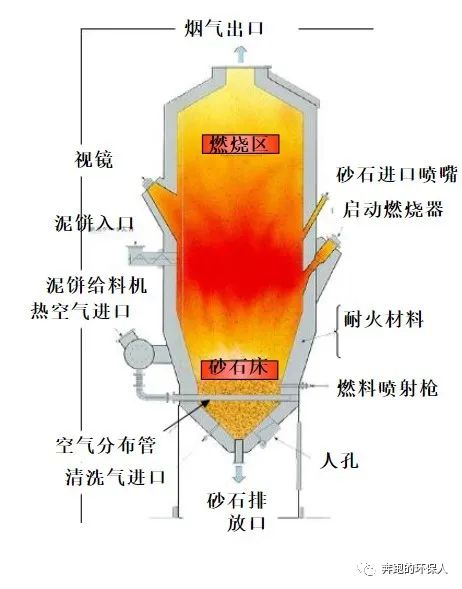 污泥進(jìn)爐口:位于砂床上方,流化床干化到干度90%左右,爐子需要干濕污泥一起燒,因此需要搭配。半干污泥輸送采用螺旋和刮板輸送的方式送入焚燒爐內(nèi)。(小編說:進(jìn)料采用砂床上方進(jìn)料,污泥進(jìn)入后會往下掉,上部需要做的更大,才能保證煙氣停留時間。)