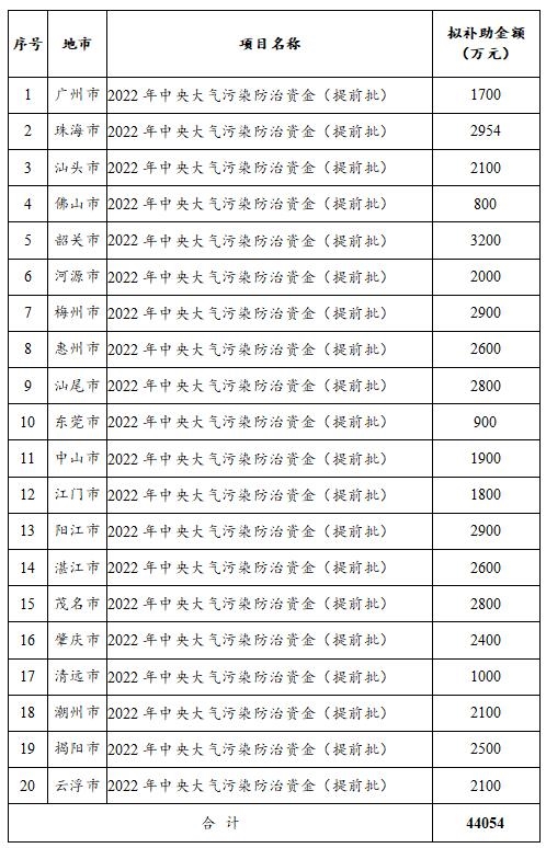 廣東省生態(tài)環(huán)境廳關(guān)于2022年中央水污染防治資金(提前批)、大氣污染防治資金(提前批)安排計(jì)劃的公示
