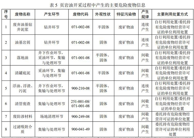 3.6 頁巖油開采主要危險(xiǎn)廢物產(chǎn)生環(huán)節(jié)