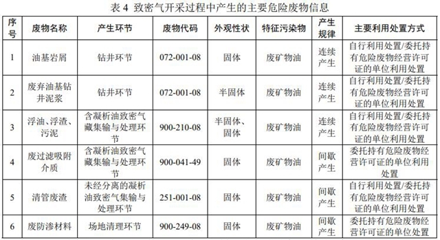 3.4 致密氣開采主要危險(xiǎn)廢物產(chǎn)生環(huán)節(jié)