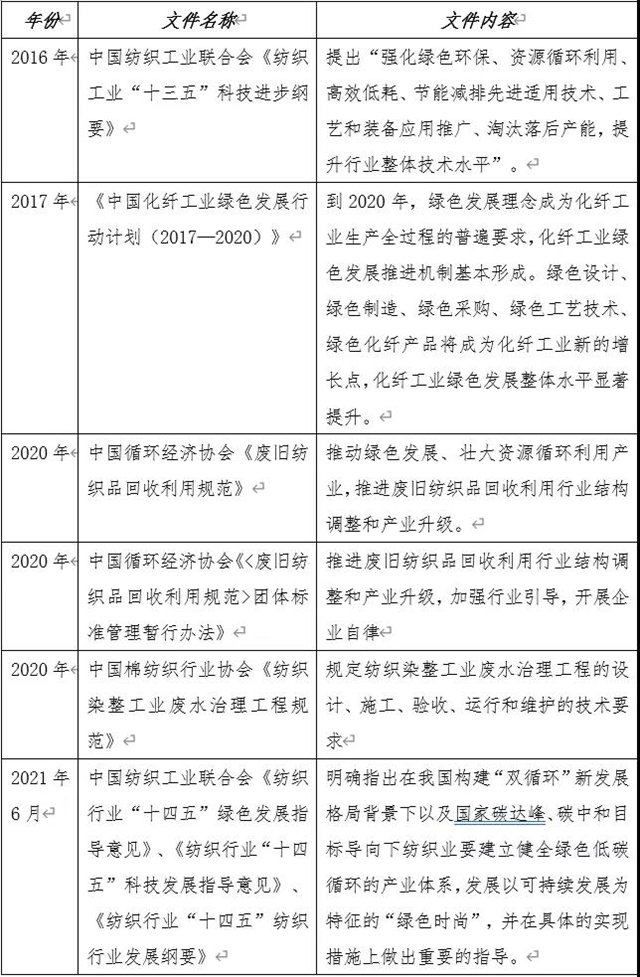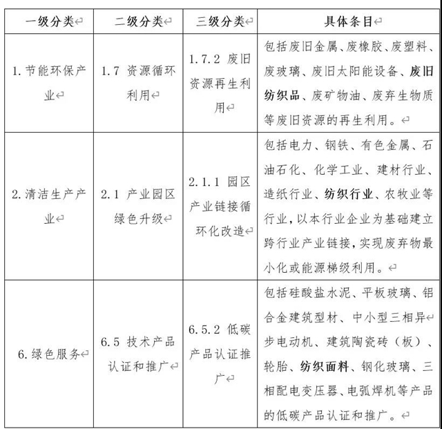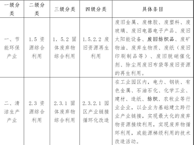 《綠色債券支持項目目錄(2021年版)》中將紡織品列入廢舊資源再生利用項目,將紡織行業(yè)企業(yè)列入園區(qū)產(chǎn)業(yè)鏈接循環(huán)化改造項目。