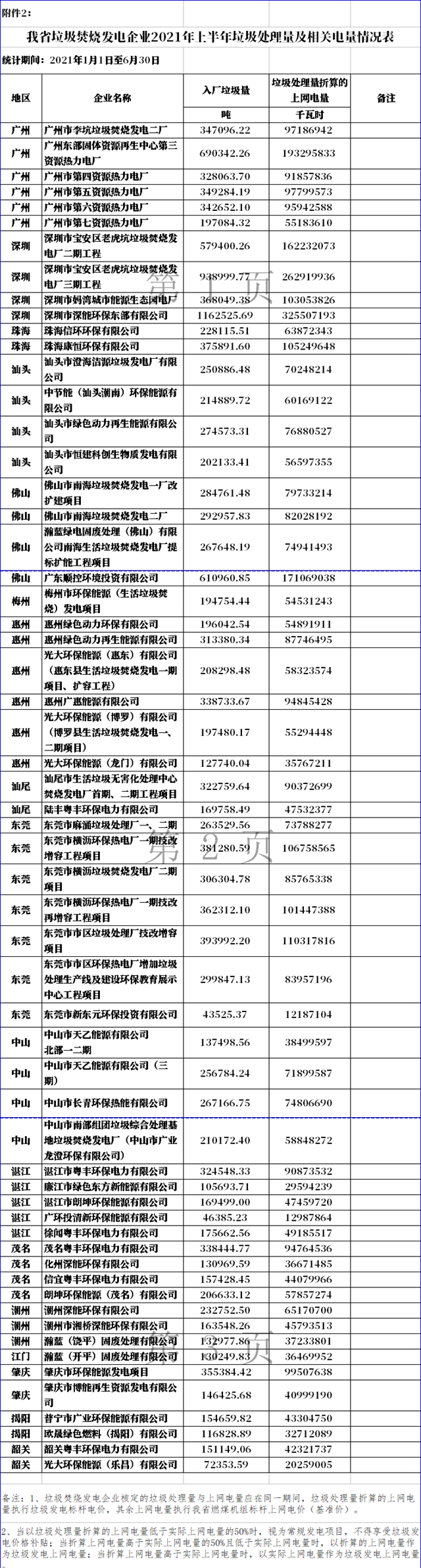 和2021年上半年垃圾處理量及相關(guān)電量的通知