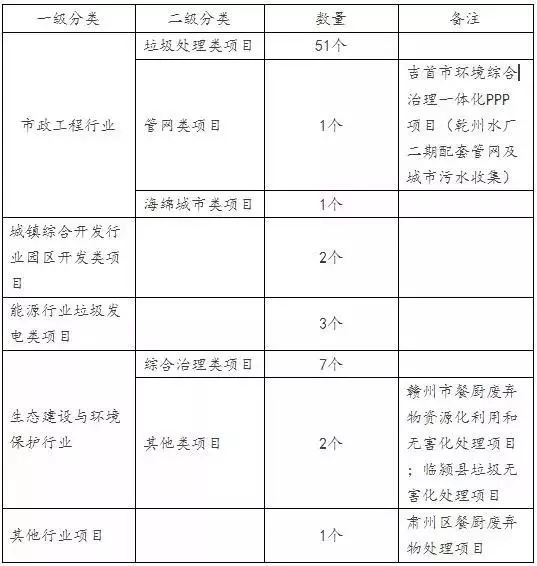財(cái)政部或發(fā)改委目前公布的PPP項(xiàng)目行業(yè)類別中,尚沒有將餐廚垃圾處理作為一項(xiàng)獨(dú)立行業(yè)予以認(rèn)定,因此,可查詢到的與餐廚垃圾處理相關(guān)的PPP項(xiàng)目,多為一級(jí)行業(yè)下所包含的子行業(yè)、子項(xiàng)目,而在一些諸如市政相關(guān)或城鎮(zhèn)綜合開發(fā)等行業(yè)中,上述情況尤為突出。