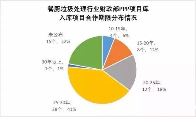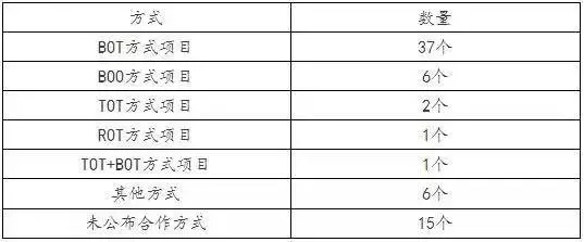 項(xiàng)目合作期限呈現(xiàn)短期、長(zhǎng)期少,中期多的分布,這與其他行業(yè)PPP項(xiàng)目的分布形態(tài)基本一致,另外還有15個(gè)項(xiàng)目尚未識(shí)別完畢或不再推進(jìn),未公布合作期限。