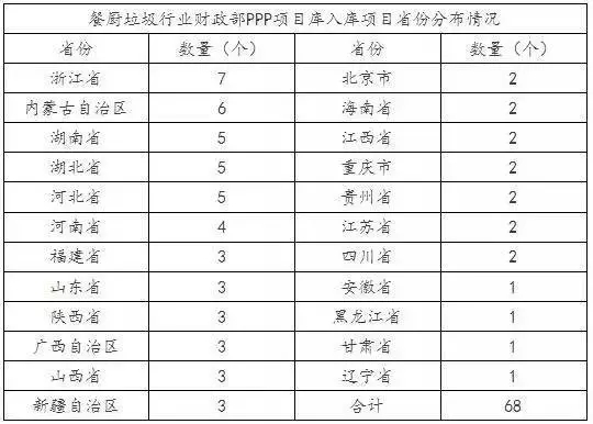 根據(jù)目前最新數(shù)據(jù),華信基業(yè)對(duì)餐廚垃圾處理行業(yè)財(cái)政部PPP入庫(kù)項(xiàng)目作出簡(jiǎn)要梳理分析。