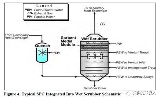 3.SPC吸附技術(shù),Sorbent Polymer Composite,一種利用特殊吸附材料的新型專利汞去除技術(shù)。其可以單獨(dú)作為一個(gè)裝置使用,也可以改造已有的濕式洗滌塔,將其作為濕式洗滌塔的一部分來使用。該系統(tǒng)采用了由SPC濾料組成的專用濾料床,可從污泥焚燒廢氣中捕獲離子態(tài)和元素態(tài)的汞。