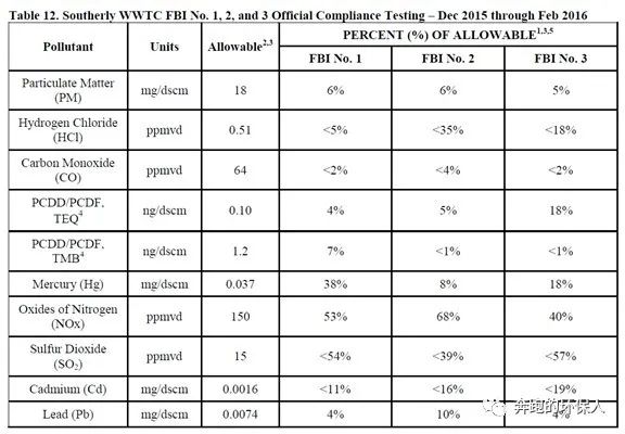 改造完成后,官方于2015年底至2016年出進(jìn)行了為期三個(gè)月的尾氣測試,最終結(jié)果顯示,經(jīng)過改造后,Southerly污泥焚燒廠的尾氣排放值完全滿足新標(biāo)準(zhǔn)中關(guān)于“已建流化床焚燒爐”尾氣排放的要求。下表數(shù)據(jù)中的百分?jǐn)?shù),表示實(shí)測濃度與排放限值的比例。