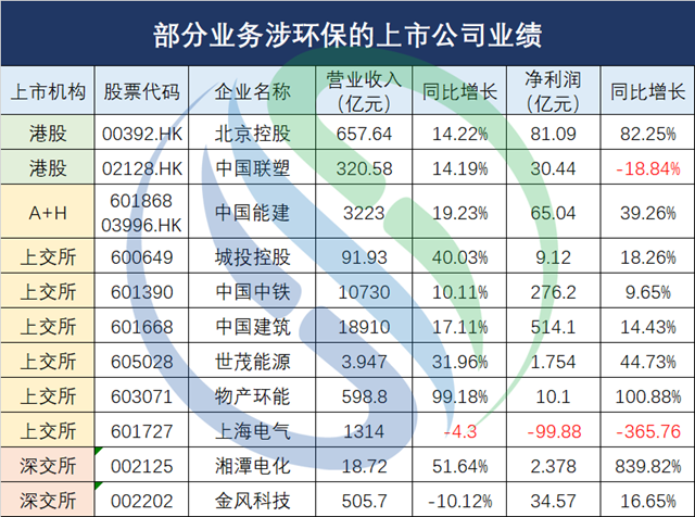 另附11家業(yè)務(wù)涉環(huán)保的上市公司業(yè)績(jī)