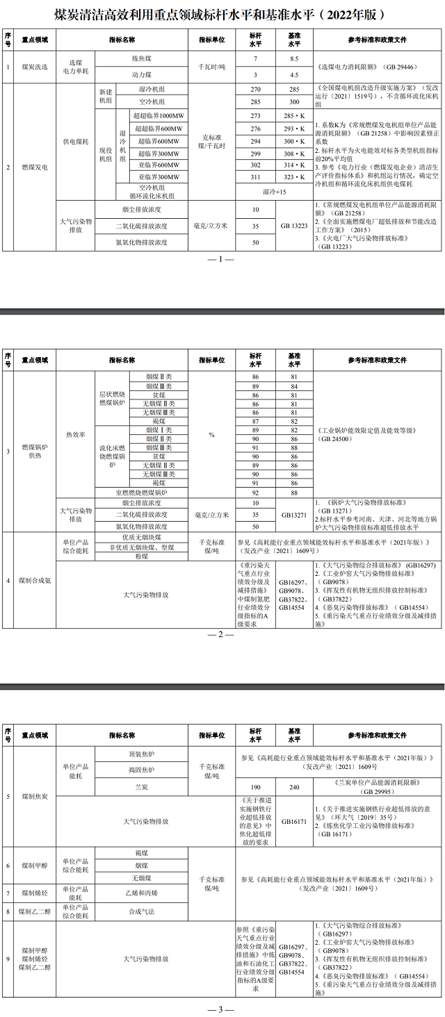 國(guó)家發(fā)展改革委等部門(mén)關(guān)于發(fā)布《煤炭清潔高效利用重點(diǎn)領(lǐng)域標(biāo)桿水平和基準(zhǔn)水平(2022年版)》的通知