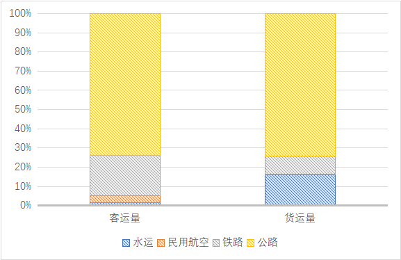 我國交通運輸行業(yè)碳排放以公路為主。我國交通運輸主要由公路、鐵路、水運、民用航空等方式組成,從各類交通運輸方式的運輸量來看,現(xiàn)階段我國公路運輸承載量最大,據(jù)國家統(tǒng)計局?jǐn)?shù)據(jù),2020年我國公路客運量占總客運量的71%,公路貨運量占總貨運量的72%。以公路交通為主的運輸結(jié)構(gòu)直接使得公路運輸成為交通領(lǐng)域的重要碳排放源,據(jù)公開信息,2019年公路運輸碳排放以占全國交通領(lǐng)域碳排放總量74%的水平,居各類運輸方式之首。