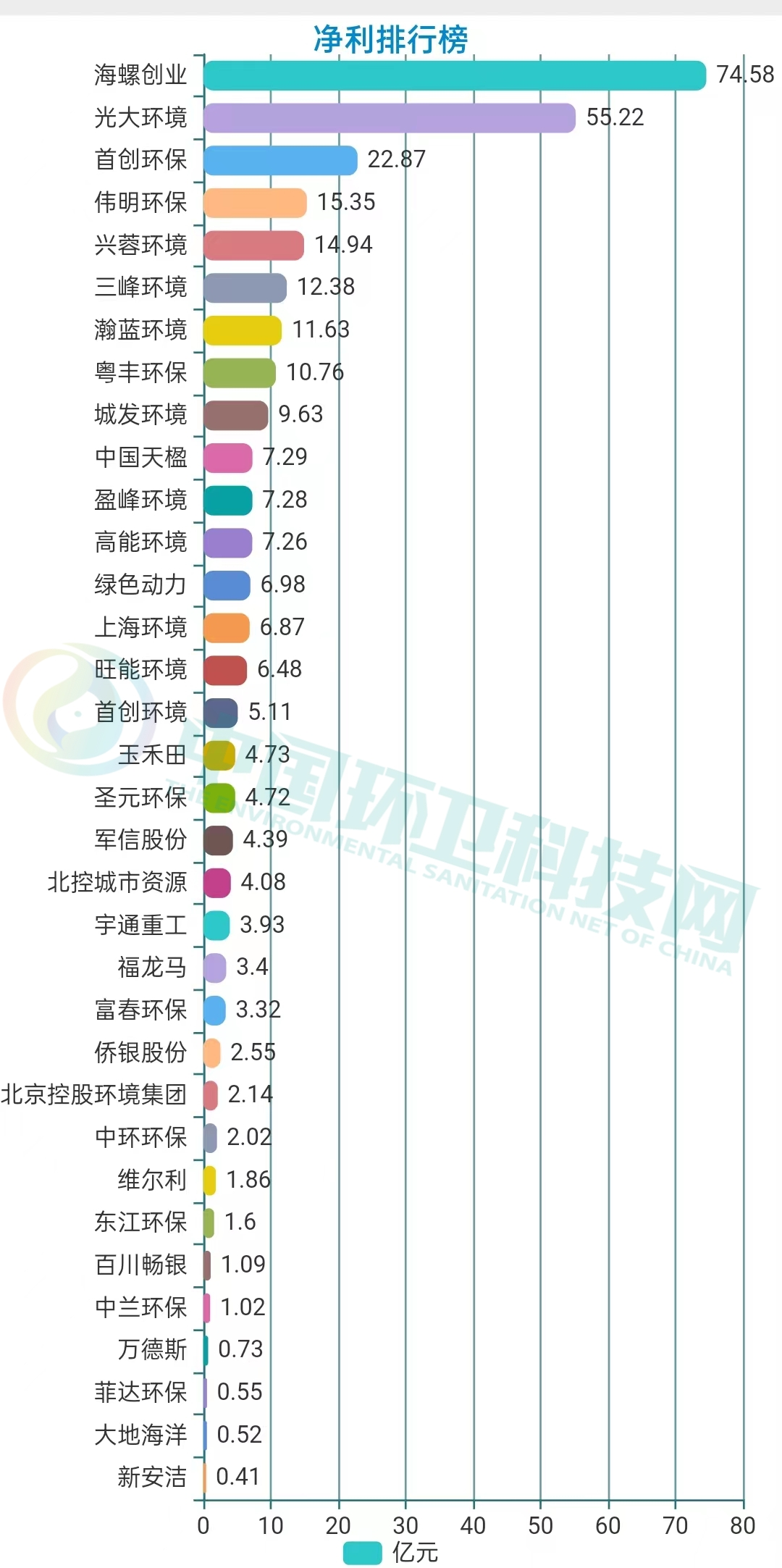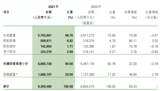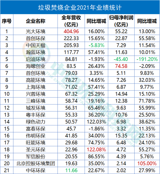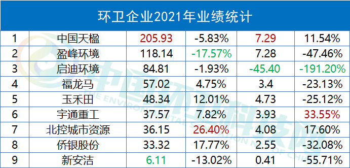 工程建設(shè)方面,建成投運項目91個,建成完工項目8個;新開工項目51個,完工并交付的環(huán)境修復服務6個、垃圾分類服務1個、EMC項目4個以及EPC項目9個。2021年,光大環(huán)境累計處理生活垃圾43,452,000噸,處理危廢及固廢269,000噸,提供綠色電力22,271,602,000千瓦時,可供18,559,000個家庭一年使用,相當于節(jié)約標煤8,909,000噸,減少二氧化碳排放20,211,000噸。同期處理污水1,698,710,000立方米,處理垃圾發(fā)電廠滲濾液9,635,000立方米,減少COD排放740,000噸。在凈利榜中,海螺創(chuàng)業(yè)以74.58億元的歸母凈利潤雄踞榜首。海螺創(chuàng)業(yè),2013年12月在香港聯(lián)合交易所主板上市(股票代碼:00586.HK),是一家提供節(jié)能環(huán)?!耙粩堊印苯鉀Q方案的大型企業(yè)集團,產(chǎn)業(yè)涉及節(jié)能、環(huán)保、新型建材、港口物流四大類,業(yè)務涵蓋生活垃圾處理、固廢危廢處置、黑臭水體治理、新型建材、港口貿(mào)易、余熱發(fā)電、高效節(jié)能立磨等。細分業(yè)務板塊,2021年在垃圾處置領(lǐng)域,海螺創(chuàng)業(yè)營收57.44億元,同比增長19.38%,占全部營收比重為68.78%。▲ 海螺創(chuàng)業(yè)分業(yè)務收入年報披露,2021年,海螺創(chuàng)業(yè)垃圾發(fā)電業(yè)務板塊共接收生活垃圾約540萬噸,處置生活垃圾約456萬噸,上網(wǎng)電量約16.65億度,按照入爐量計算的平均噸上網(wǎng)電量約為365度,較去年同比提高19度。目前,海螺創(chuàng)業(yè)已成功取得貴州清鎮(zhèn)、重慶巫山、吉林洮南、河北圍場、越南春山等13個項目以及并購的10個項目,共計23個焚燒發(fā)電項目,涉及產(chǎn)能規(guī)模約567萬噸/年。3月30日,海螺創(chuàng)業(yè)分拆海螺環(huán)保成功在香港聯(lián)合交易所主板上市。日前,又宣布擬分拆海創(chuàng)綠能于上海證券交易所獨立上市。在大部分上市企業(yè)都實現(xiàn)盈利的背景下,博世科和啟迪環(huán)境成為唯二虧損的企業(yè),前者虧損5.15億,后者的虧損更是達到了驚人的45.4億。博世科,是一家位于廣西的環(huán)保企業(yè),2015年,在深交所創(chuàng)業(yè)板上市,業(yè)務領(lǐng)域重點為工業(yè)環(huán)境治理、城鄉(xiāng)環(huán)境、土壤環(huán)境修復、固廢處置與危廢處置、智慧環(huán)衛(wèi)、環(huán)境服務業(yè)等。對于虧損原因,博世科在年報中披露主要是受到疫情反復、經(jīng)濟下行、行業(yè)競爭加劇、市政項目結(jié)算和老舊項目回款不及預期等內(nèi)外部發(fā)展阻力綜合影響。啟迪環(huán)境,這個曾經(jīng)的固廢領(lǐng)域龍頭企業(yè),最近頻頻登上環(huán)衛(wèi)科技網(wǎng)的頭條,對于它已無須過多贅述。可以說,它的虧損早就在業(yè)內(nèi)人士的預料之中。而對于虧損原因,啟迪環(huán)境在年報中這樣解釋:“系公司對現(xiàn)有資產(chǎn)、項目進行全面梳理,部分項目擬戰(zhàn)略性退出,公司根據(jù)《企業(yè)會計準則》規(guī)定對相關(guān)資產(chǎn)計提減值所致。不過,該虧損對公司當前經(jīng)營及償債能力未產(chǎn)生重大影響?!?/span>具體來說,原因包括對已停建項目、擬退出項目計提資產(chǎn)減值;對資產(chǎn)運營效率較低、不能持續(xù)運營和公司整體戰(zhàn)略涵蓋不到的項目進行退出、轉(zhuǎn)讓處置;對部分款項回收存在實質(zhì)性障礙的應收賬款、其他應收款、長期應收款及應收票據(jù)計提信用減值損失等。如今,博世科于2021年完成混改,廣環(huán)投成為其控股股東。啟迪環(huán)境與城發(fā)環(huán)境的合并雖然存在客觀上的“不確定性”,混改終究會完成。我們也希望完成混改后的兩家企業(yè),能夠迅速走上正軌,扭虧為盈。天楹、盈峰領(lǐng)跑,唯宇通、北控實現(xiàn)雙增這36家上市企業(yè)中有9家公司主營業(yè)務為環(huán)衛(wèi)板塊,中國天楹、盈峰環(huán)境和啟迪環(huán)境領(lǐng)跑營收榜,中國天楹、盈峰環(huán)境和玉禾田則在凈利榜上名列前茅。中國天楹,早在1994年就登陸深交所主板A股。其以垃圾焚燒發(fā)電、城市環(huán)境服務、環(huán)保裝備制造為壓艙石,打通了從前端清掃、中轉(zhuǎn)到分選、末端處置的城市環(huán)境服務全產(chǎn)業(yè)鏈。2021年,在城市環(huán)境服務板塊,其營業(yè)收入達到90.84億元,占全部營收比重44.11%。2021年,中國天楹中標了烏海市濱河新區(qū)環(huán)衛(wèi)作業(yè)市場化運營項目,如皋長江鎮(zhèn)道路、河道保潔、垃圾清運及農(nóng)村環(huán)境整治服務外包項目,張北縣草原天路環(huán)境衛(wèi)生服務政府采購項目以及任丘市城鄉(xiāng)環(huán)衛(wèi)一體化農(nóng)村部分對外承包項目等多個城市環(huán)境服務項目,為境內(nèi)18個省市自治區(qū)35個城市提供了專業(yè)的城市環(huán)境服務。盈峰環(huán)境,于2000年在深交所主板A股上市。其主營業(yè)務包括環(huán)衛(wèi)服務和環(huán)衛(wèi)裝備,為客戶在城鄉(xiāng)保潔消毒、生活垃圾分類、固廢垃圾清掃運處、環(huán)衛(wèi)人員管理、餐廚垃圾收運、渣土運輸監(jiān)管、滲濾液處理、智慧城市建設(shè)等領(lǐng)域提供全新維度的全生命周期物聯(lián)網(wǎng)集成應用解決方案和智慧平臺運營服務;環(huán)衛(wèi)裝備則覆蓋5G環(huán)衛(wèi)機器人、無人駕駛環(huán)衛(wèi)車、智能小型環(huán)衛(wèi)機器人、新能源環(huán)衛(wèi)裝備、垃