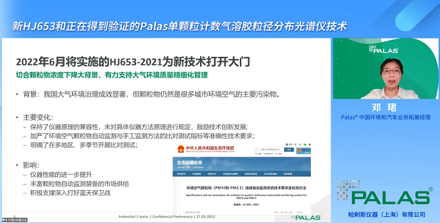 “我國大氣環(huán)境治理成效顯著,但顆粒物仍然是很多城市環(huán)境空氣的主要污染物”,帕剌斯儀器(Palas)中國環(huán)境和汽車業(yè)務(wù)拓展經(jīng)理鄧珺指出,“在此背景下,將于2022年6月實施的《環(huán)境空氣顆粒物(PM10和 PM2.5)連續(xù)自動監(jiān)測系統(tǒng)技術(shù)要求及檢測方法(HJ653-2021)》無疑是向顆粒物監(jiān)測新技術(shù)敞開了大門,將有力推動大氣環(huán)境質(zhì)量精細化管理。”