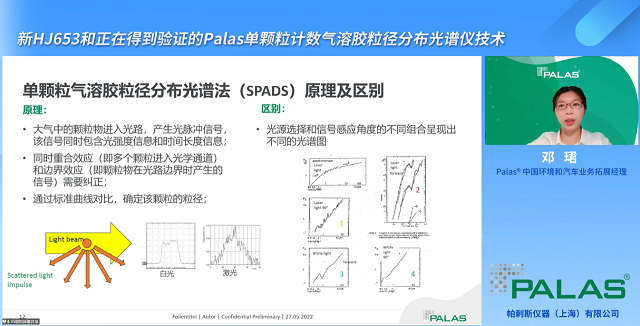 單顆粒氣溶膠粒徑分布光譜法(SPADS)——正是Palas專為提升顆粒物監(jiān)測數(shù)據(jù)可靠性推出的技術(shù)方案。鄧珺表示,選擇單粒子測量主要有兩大理由:一是測量單個顆粒光學信號,可具體表征出單顆粒粒子特征,包括直徑、表面、體積、質(zhì)量和濃度以及顆粒數(shù);二是單個顆粒光散射信號不易受粒子形狀、直徑、折射率影響。