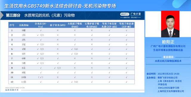 由歐陽正打頭陣,有關(guān)《生活飲用水 無機污染物監(jiān)測技術(shù)》的主題分享就此展開。