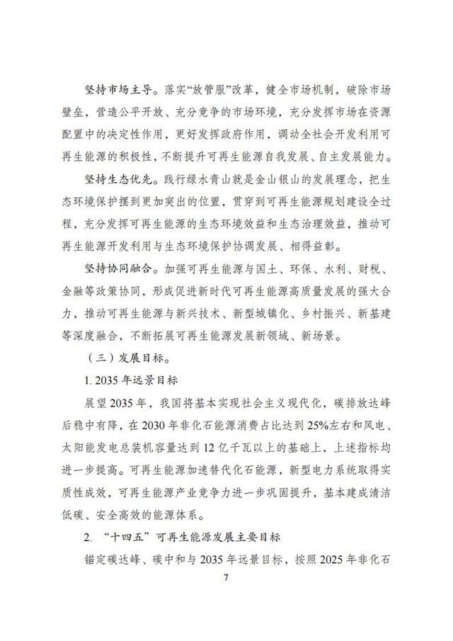 為深入貫徹“四個(gè)革命、一個(gè)合作”能源安全新戰(zhàn)略,落實(shí)碳達(dá)峰、碳中和目標(biāo),推動(dòng)可再生能源產(chǎn)業(yè)高質(zhì)量發(fā)展,根據(jù)《中華人民共和國(guó)國(guó)民經(jīng)濟(jì)和社會(huì)發(fā)展第十四個(gè)五年規(guī)劃和2035年遠(yuǎn)景目標(biāo)綱要》和《“十四五”現(xiàn)代能源體系規(guī)劃》有關(guān)要求,我們組織編制了《“十四五”可再生能源發(fā)展規(guī)劃》?,F(xiàn)印發(fā)給你們,請(qǐng)遵照?qǐng)?zhí)行。