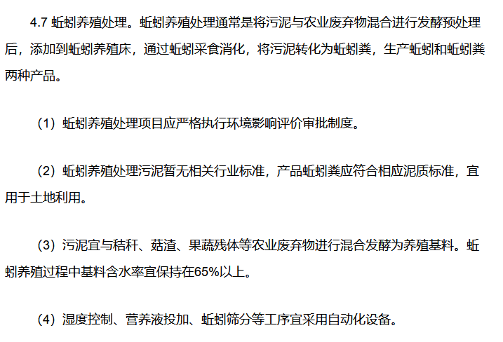 事實上,在去年9月印發(fā)的《四川省城鎮(zhèn)生活污水處理廠污泥處理處置技術(shù)指引(試行)》(以下簡稱“指引”)中,蚯蚓養(yǎng)殖處理是作為一個重要的污泥處理單元技術(shù)路線而存在的,指引中對蚯蚓養(yǎng)殖處理的概念和注意事項做出了詳細闡述。