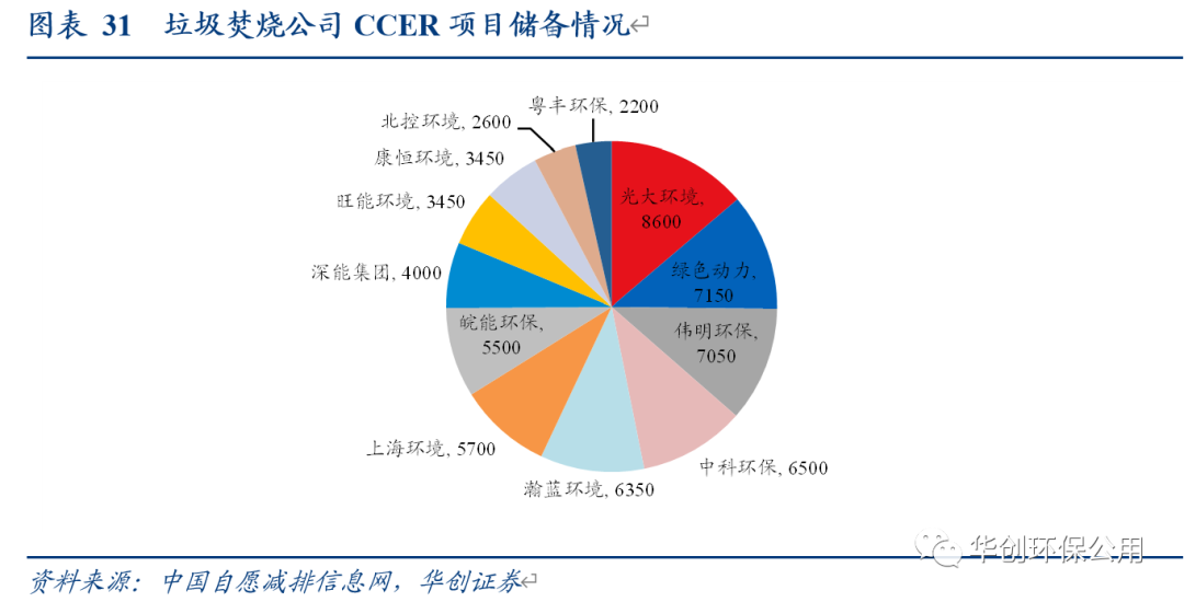 最理想情況下,CCER收入在利潤端可為垃圾焚燒頭部企業(yè)帶來3%-9%的增厚。我們選取瀚藍環(huán)境、光大環(huán)境、偉明環(huán)保和綠色動力四家頭部垃圾焚燒上市公司進行測算,在假設公司所處理的垃圾全部可以轉化為CCER的情況下,按照2021年的垃圾處理量和凈利潤,CCER收入可分別為瀚藍環(huán)境、光大環(huán)境、偉明環(huán)保、綠色動力帶來4.45%/4.02%/2.48%/8.67的利潤端彈性。